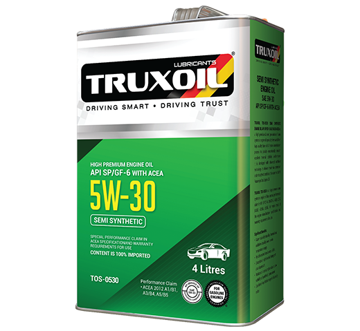 TRUXOIL TOS-0530 is a high premium semi synthetic engine oil has special performance claim in API SP/GF-6, SN/GF-5, ACEA 2012 A1/B1, A3/B4, A5/B5. It meets most of the engine manufacturer specification and warranty requirements for use.